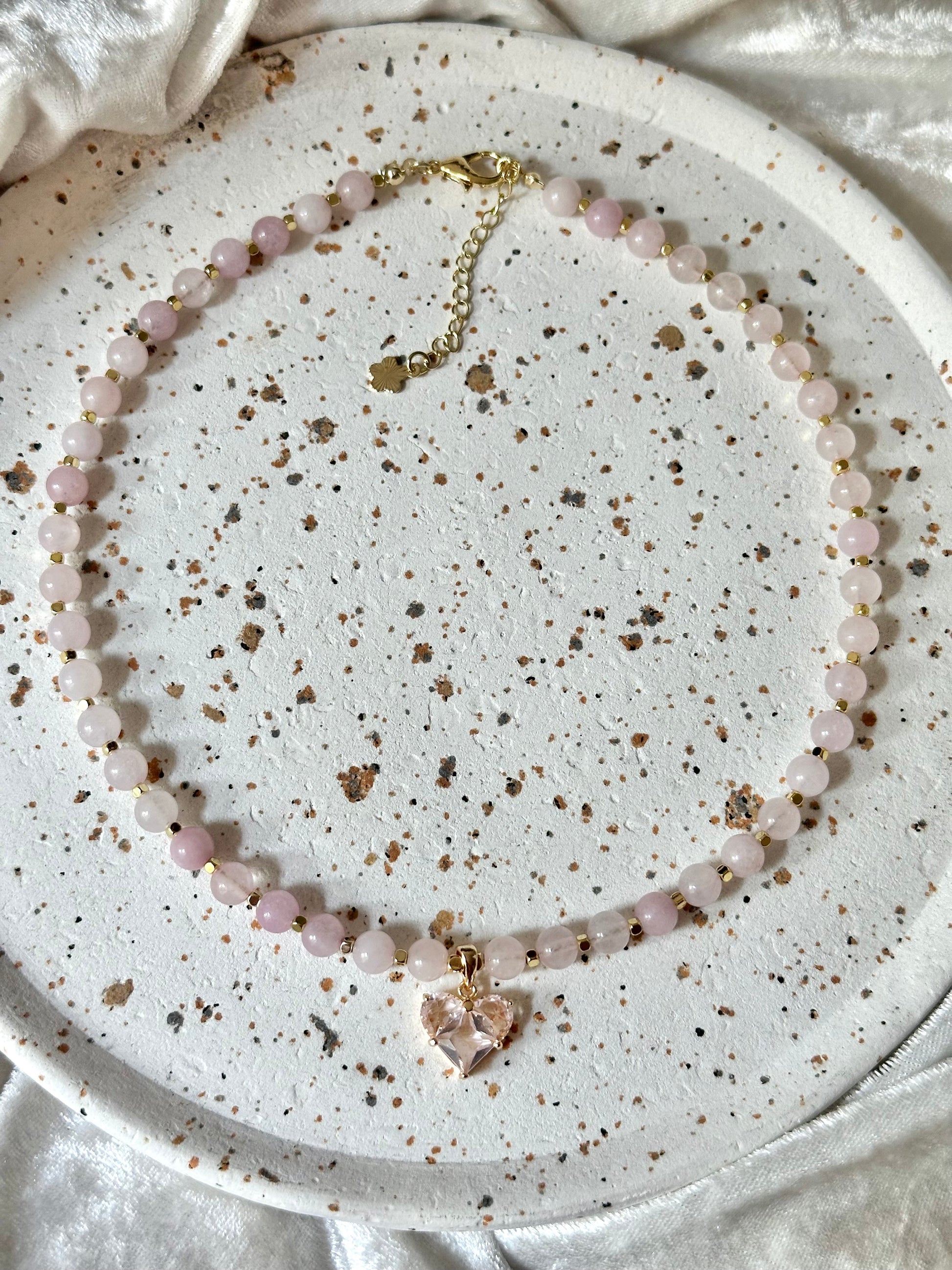 “Blush Aura” Rose Quartz Necklace with an 18K Gold Plated Zircon Heart Pendant